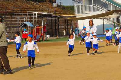 小春日和になりました。園庭では、ネイティブの先生と鬼ごっこを ...